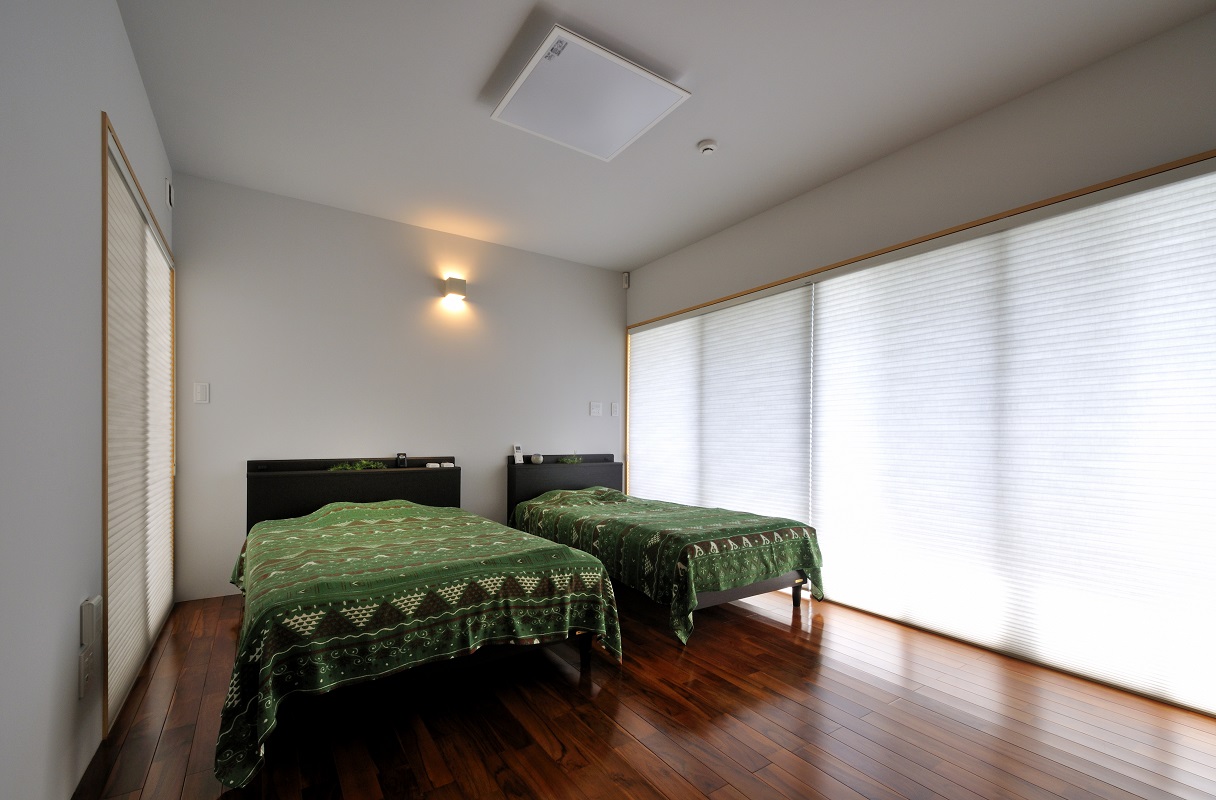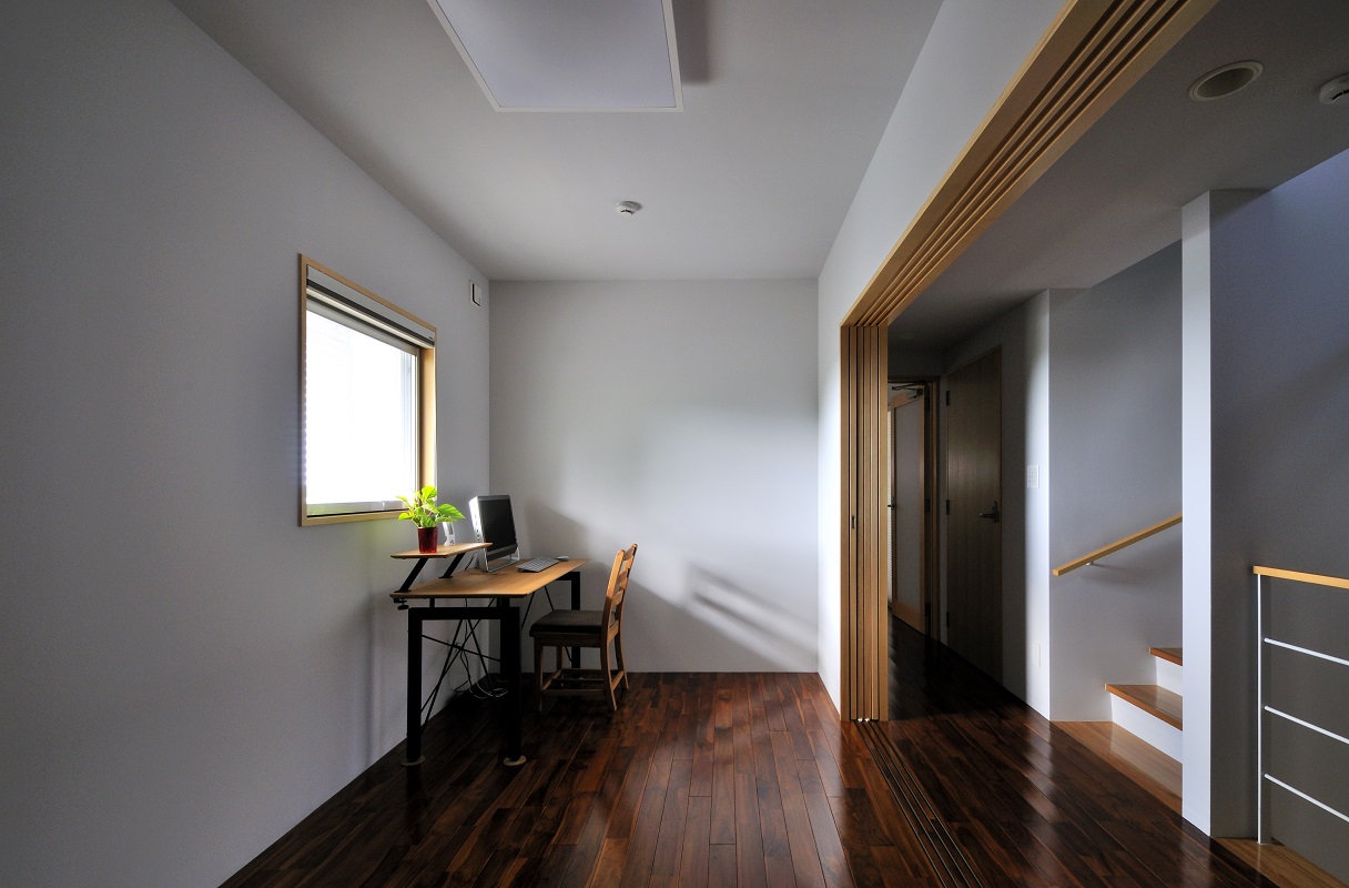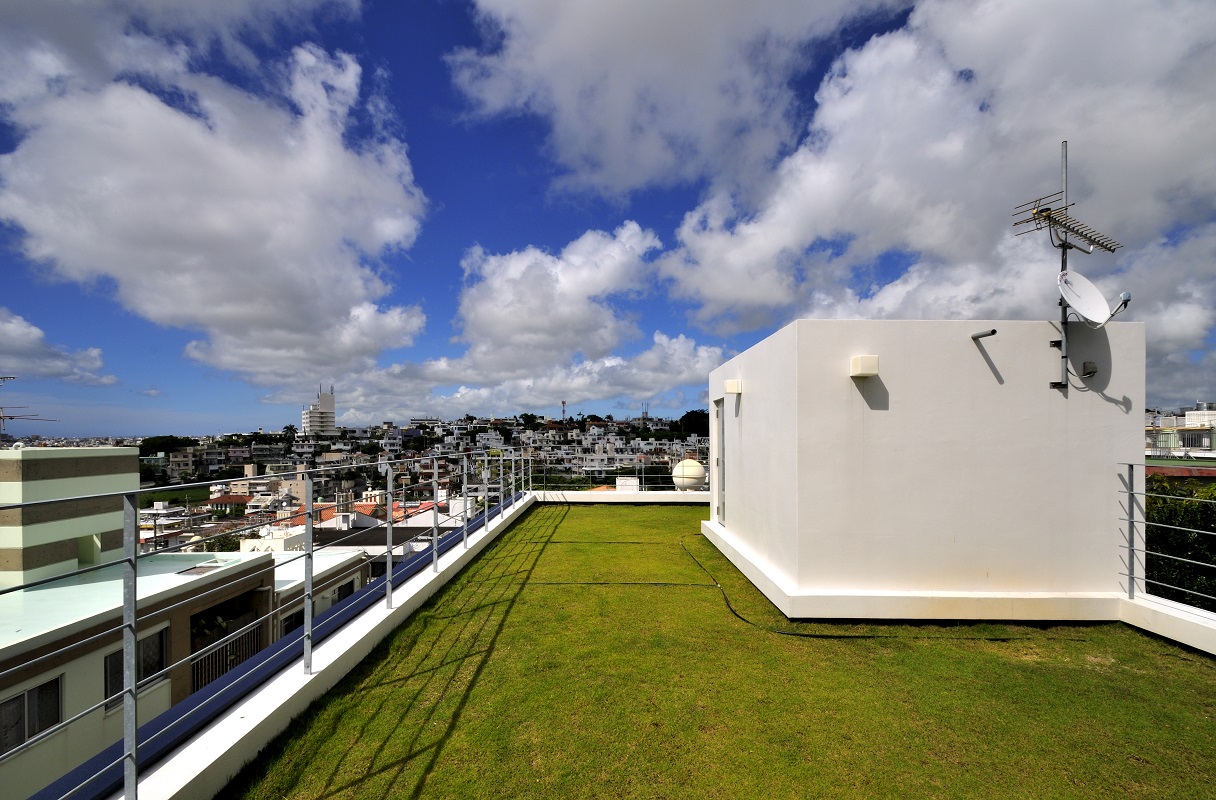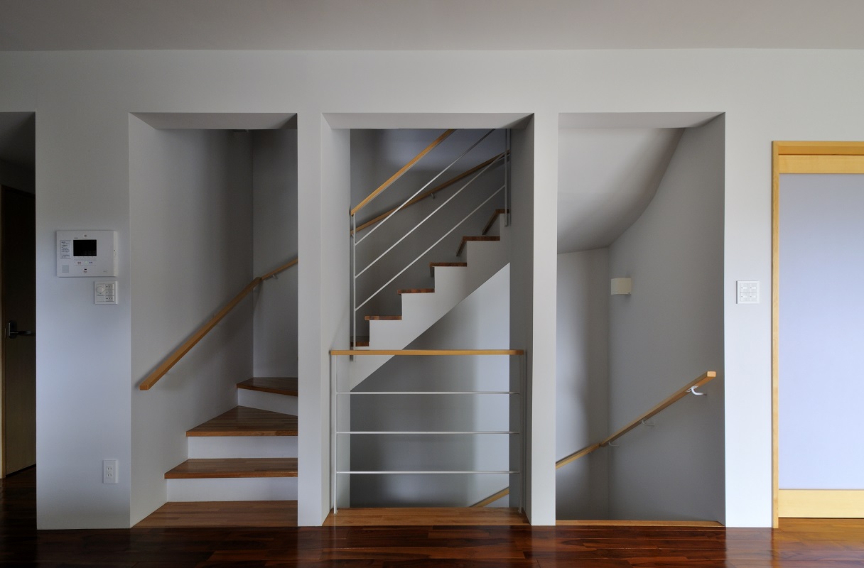 豊見城の住宅街、那覇の市街地を臨む敷地に建つ住宅。 傾斜が厳しい敷地に対し、高低差のある庭を設け、敷地全体を建物を含め立体的に活用できるよう計画を行った。また、3層に渡る吹抜を階段に沿うように設け、建物全体に風が抜けるよう考慮した。