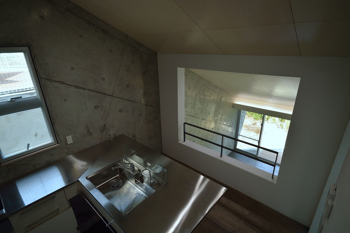 傾斜地に建つスキップフロアの家