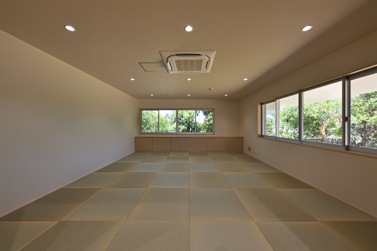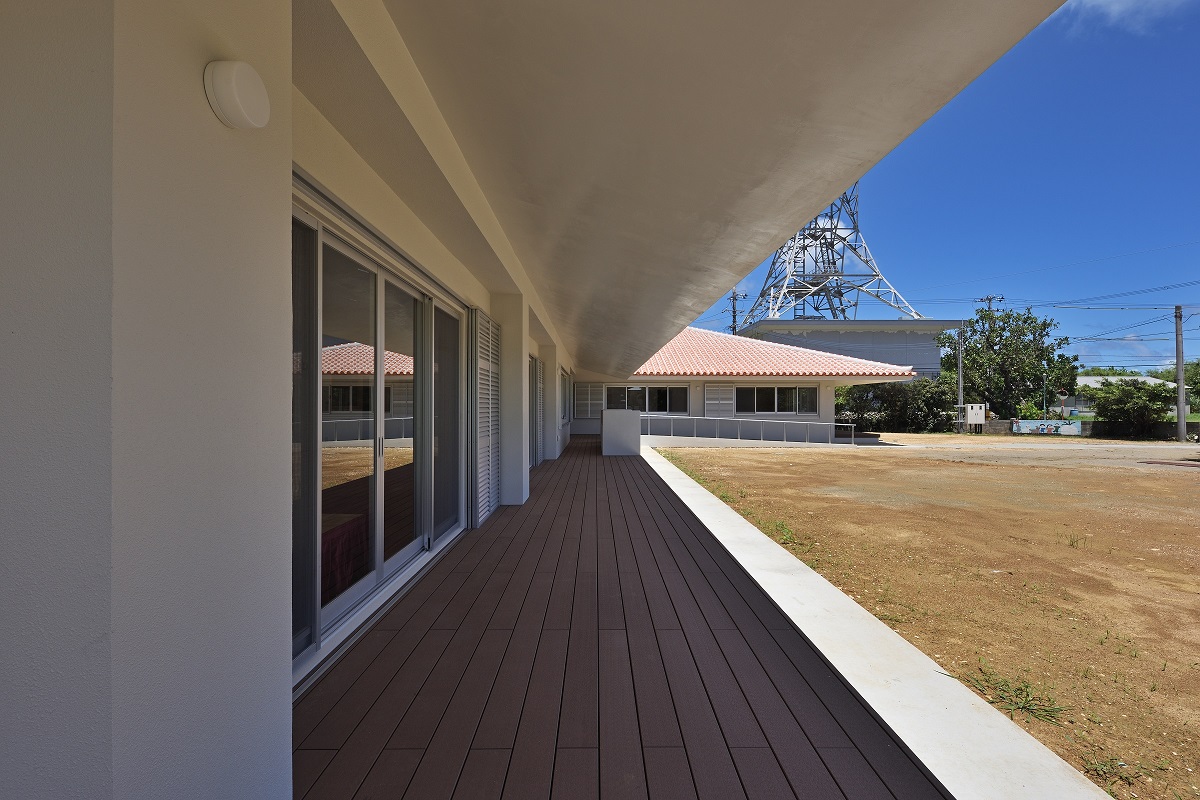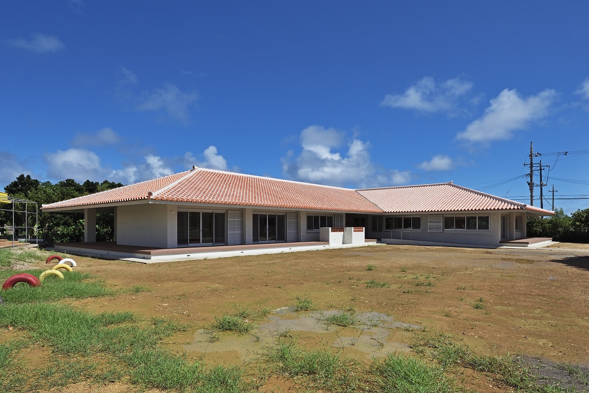 竹富島の民家などに代表される赤瓦の大きな屋根をかけるとともに、庇をできるだけ大きく伸ばし、周囲の縁側をカバーできるようにしている。内部は各部屋の連続により構成され、廊下はできるだけ配置しないように計画を行っている。