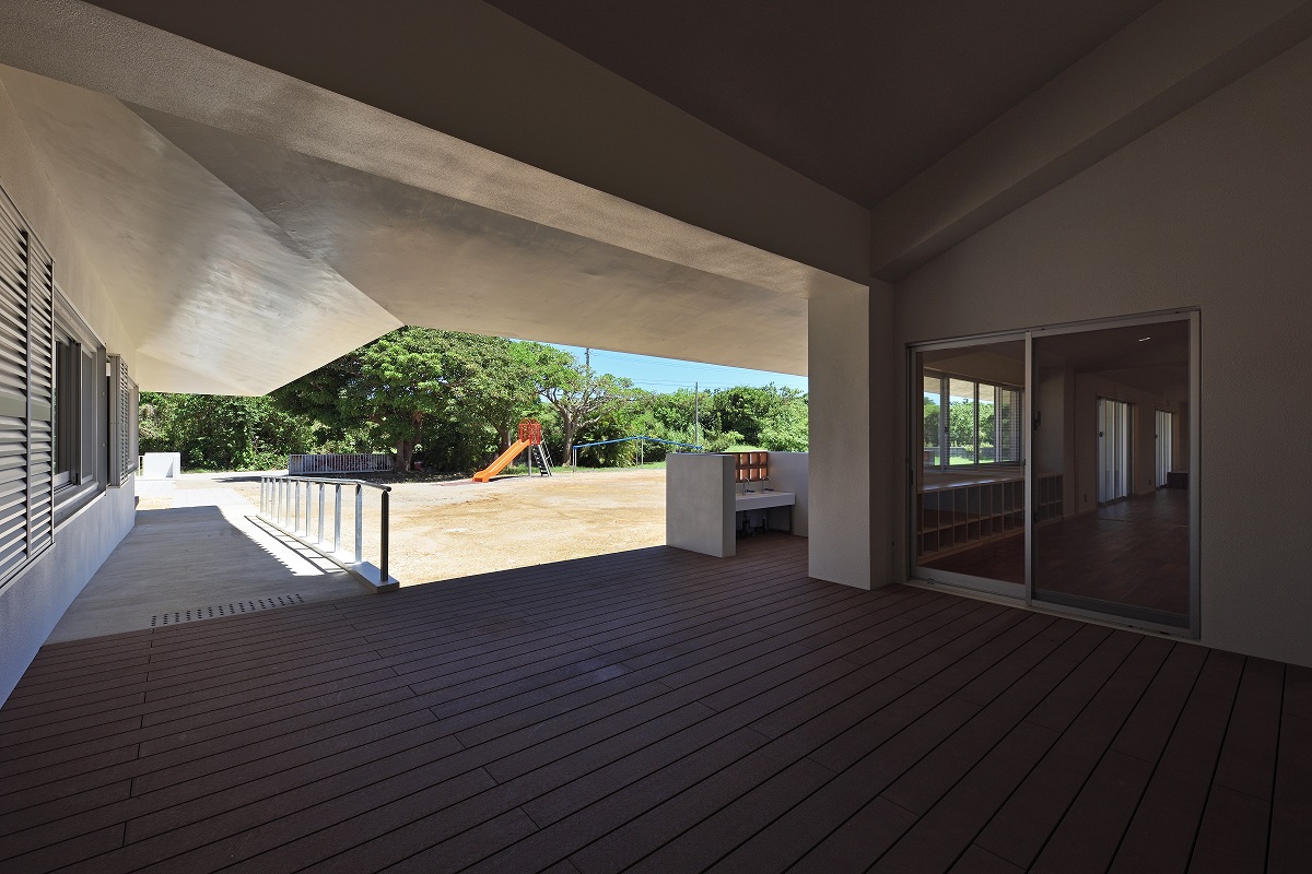 沖縄県の八重山、竹富町の離島に計画された幼稚園と福祉施設の複合施設。